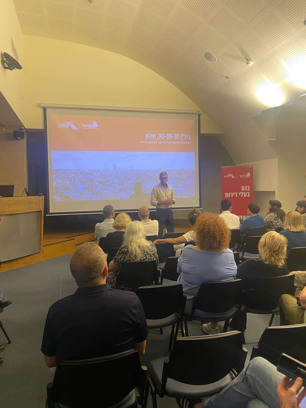 בכנס הוצגה בפני בעלי הדירות התהליך ותכניות הפרויקט.